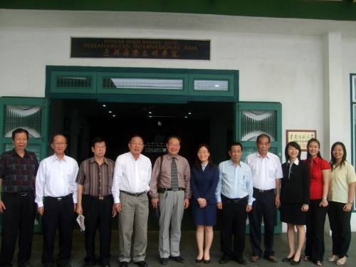 蘇北華聯(lián)副理事長廖章然率隊陪同客人參觀了亞洲國際友好學院,介紹了該校的創(chuàng)辦過程及發(fā)展現(xiàn)狀,并先后參觀了學院圖書館、視聽室、遠端教育室、畫展室、星洲大禮堂,就學院的長遠發(fā)展及設施建設交換了意見。之后,蘇振武又來到中國老師的宿舍樓,與中國老師進行親切交談。