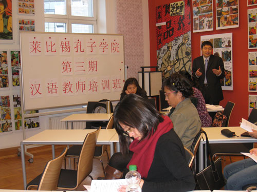 學(xué)員們普遍認(rèn)為本期漢語(yǔ)教師培訓(xùn)的內(nèi)容切合大家的需求,收獲很大。培訓(xùn)結(jié)束后,學(xué)員們紛紛在留言本上寫下自己參加培訓(xùn)的體會(huì)和建議。連續(xù)3次都參加了培訓(xùn)的侯碧瑩寫道,“希望能在萊比錫孔院下次教師培訓(xùn)班上看到萊比錫孔子學(xué)院真實(shí)的教學(xué)情景,如有可能將孔院課堂教學(xué)制作成錄像,供大家分享與學(xué)習(xí)! (高永安 賴志金 陳曉瑋)