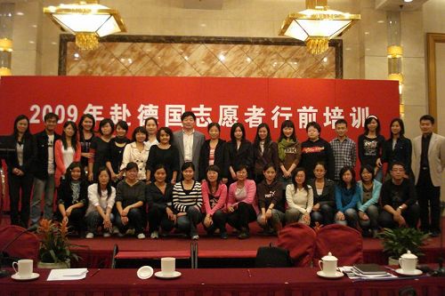 國家漢辦12日為該批志愿者組織了行前培訓并為他們送行。志愿者中心主任薛華領(lǐng)勉勵志愿者們繼承漢語教師志愿者兢兢業(yè)業(yè)、克己奉獻的優(yōu)良作風,發(fā)揚志愿精神,高標準要求自己,做好志愿服務工作。同時也希望志愿者們牢記漢語教師志愿者的“光榮感、責任感、使命感”,進一步提高自身素質(zhì),關(guān)心國家大事,在新中國60華誕之際,抓住機遇,展示祖國的偉大成就,為中德友好交流做出貢獻。志愿者們紛紛表示,祖國的崛起與富強堅定了他們當好文化傳播民間使者的信心和決心,激勵著他們投身到漢語國際推廣事業(yè)的最前沿隊伍中去,把工作做得更好、更精彩。