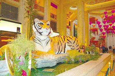 “恭喜發(fā)財”、“迎春接虎”,美麗湖賭場、威尼斯人賭場、百麗宮賭場、凱撒宮賭場、永利賭場及安可賭場都高掛上吉祥的大紅色彩球或春聯(lián),讓游客感受中國新年的喜悅。