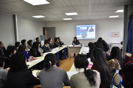 中新網(wǎng)2月10日電 據(jù)北京僑網(wǎng)消息,近日,“巴黎-北京遠(yuǎn)程網(wǎng)絡(luò)華文教育座談會(huì)”在法國(guó)歐洲時(shí)報(bào)文化中心舉行,中國(guó)駐法使館領(lǐng)事部參贊何淑琴,法國(guó)歐洲時(shí)報(bào)總編、法國(guó)華文教育協(xié)會(huì)發(fā)起人梁源法,法國(guó)歐洲時(shí)報(bào)副社長(zhǎng)陳曉燕,北京市僑辦副巡視員初世敏以及法國(guó)近20所華文學(xué)校的負(fù)責(zé)人參會(huì)。