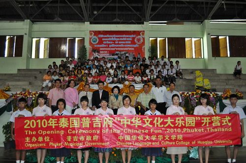 中新網(wǎng)3月23日電 據(jù)華僑大學(xué)網(wǎng)站消息,3月20日上午,由泰國(guó)普吉市政府、華僑大學(xué)華文學(xué)院主辦的“中華文化大樂(lè)園”普吉營(yíng)開營(yíng)儀式在普吉市活動(dòng)中心舉行。泰國(guó)普吉市市長(zhǎng)、副市長(zhǎng),華僑大學(xué)華文學(xué)院黨委書記趙明光,泰中農(nóng)業(yè)科技促進(jìn)會(huì)會(huì)長(zhǎng)陳碧達(dá),及千余名學(xué)生及家長(zhǎng)出席開營(yíng)式。