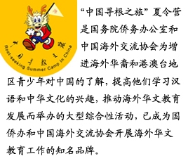 美國《僑報》記者吳健:美國華裔青少年參加“中國尋根之旅夏令營”的目的已不僅僅局限于簡單的開拓視野和尋根問祖,還包括幫助他們認(rèn)同文化身份和未來事業(yè)發(fā)展。
