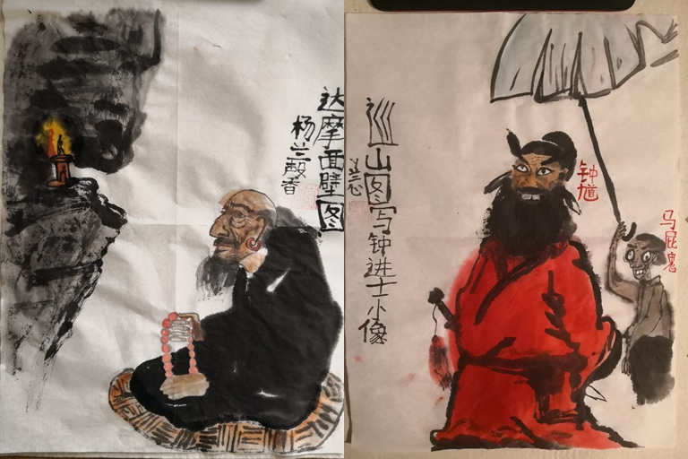 達摩面壁圖是由于達摩在中國南方傳教,未能在中國華南地區(qū)留下好印象,后來他幾經(jīng)流浪,終于到達了少林寺。在被拒絕進入及在短時間內(nèi)被驅(qū)逐后,他住在少林寺附近的一個山洞里,在那里他“面對墻壁九年,一直不說話”。最終他在石頭上印上了自己的倒影,并領(lǐng)悟了佛教的真諦,創(chuàng)建了禪宗。