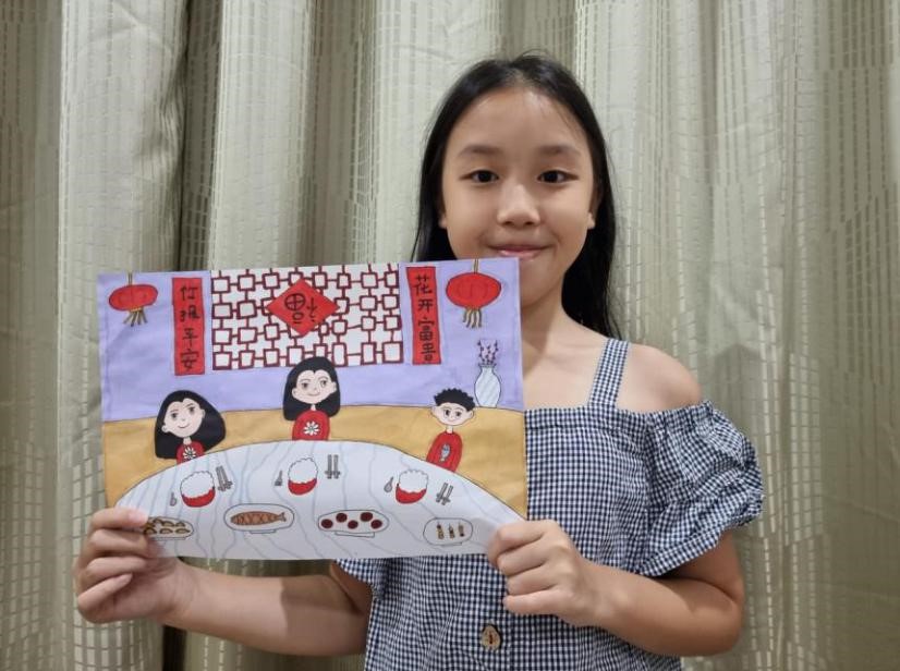 我和家人能在除夕時(shí)聚在一起吃年夜飯的圖畫(huà)。