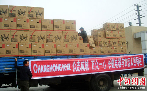 4月19日,在駐地部隊某部的組織下,長虹緊急從蘭州、西安等庫房抽調(diào)貨源,發(fā)出1000臺電視;20日,長虹再次發(fā)出610臺電視。