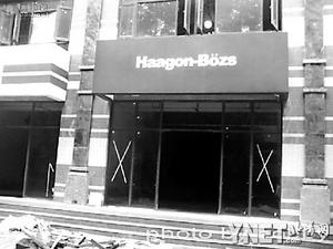原來(lái),這些商鋪的招牌乍一看是大牌,可再仔細(xì)看看,不對(duì)啊,怎么全部是山寨版?真是大跌眼鏡!從東往西第一家是大名鼎鼎的運(yùn)動(dòng)品牌李寧,“錯(cuò)了!這個(gè)叫李明LI-MING!钡诙沂切≠Y最愛(ài)的星巴克STARBUCKS,“又錯(cuò)了,這個(gè)叫BUCKSSTAR”。其他的大牌也如法炮制,必勝客成了“必勝糊”,哈根達(dá)斯成了“哈根波斯”,包括屈臣氏、seven-eleven等名牌都被惡搞了一把。最令人叫絕的是,麥當(dāng)勞的經(jīng)典m形標(biāo)志,被多加了一個(gè)彎,成了“3扇門”。記者看到,這些掛了招牌的商鋪并沒(méi)有一家正式開(kāi)張。