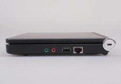 昭陽(yáng)M10的機(jī)身側(cè)面接口比較簡(jiǎn)單,但也涵蓋了基本的使用需求。機(jī)身前端沒(méi)有設(shè)置任何功能接口,不過(guò)內(nèi)置了一組雙聲道立體聲音響,在閑暇時(shí)放上一段舒心的音樂(lè)也是不錯(cuò)的選擇。機(jī)身右側(cè)設(shè)置了一對(duì)音頻I/O接口、一枚USB2.0接口、一枚RJ45網(wǎng)絡(luò)接口以及轉(zhuǎn)軸上的安全鎖孔,左側(cè)除電源插孔外還加入了VGA視頻接口、SD讀卡器以及USB2.0接口,足以滿(mǎn)足外接存儲(chǔ)設(shè)備或顯示設(shè)備的需要。