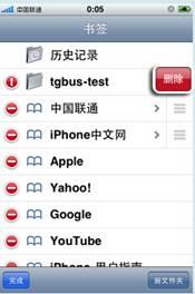 ⑵ 在書(shū)簽列表界面中,點(diǎn)擊屏幕左下角的“編輯”按鈕可刪除已經(jīng)保存的書(shū)簽,具體操作為:點(diǎn)擊紅色的“-”,使其變?yōu)椤皘”,直接點(diǎn)擊“刪除”按鈕即可刪除對(duì)應(yīng)的書(shū)簽