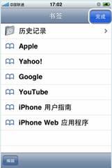 ⑵首次打開Safari瀏覽器時,系統(tǒng)會彈出書簽菜單,如不想訪問蘋果推薦訪問的網(wǎng)站,可直接點擊右上角的“完成”按鈕進入空白頁面(如想查看推薦網(wǎng)站,直接單擊相應(yīng)的書簽即可)
