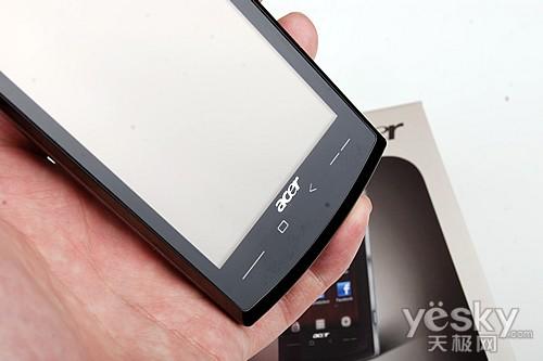 外觀上,ACER neotouch采用了傳統(tǒng)的直板造型設(shè)計,配備了一塊3.8英寸WVGA的電阻式觸摸屏幕,分辨率達到了480x800像素,顯示效果清晰細(xì)膩。neotouch擁有117.5x63.5x12.85 毫米的三圍體積,重量131.5克,整機設(shè)計簡約時尚,握持手感非常不錯。