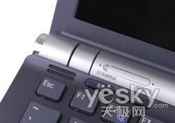 轉(zhuǎn)軸部分有一個(gè)STAMINA和SPEED模式切換鍵,這個(gè)切換鍵是專(zhuān)門(mén)針對(duì)這款機(jī)器獨(dú)特配置所設(shè)計(jì)的,由于Z55配備了雙顯卡,并且NVIDIA與IntelX4500并不支持熱切換,為了在省電和性能之間方便切換,索尼Z55加入了這個(gè)按鍵,在“持久(STAMINA)模式”中,它使用的是集成顯卡(移動(dòng)式英特爾®圖形媒體加速器 4500MHD)。而在“(SPEED)模式”中,VAIO Z5系列使用的是獨(dú)立顯卡(NVIDIA GeForce 9300M GS (GPU) 顯卡,用戶(hù)可根據(jù)實(shí)際需求,在使用中做不同模式切換。
