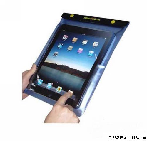 TrendyDigital推出的WaterGuard防水保護套采用了多項防水設計,包括一個按壓折疊式密封塞、兩條防水拉鏈、數(shù)個防水按鈕以及一個觸摸卡扣。WaterGuard在使用時幾乎不會影響iPad虛擬鍵盤的操作,并同時兼具防塵、防沙功能,還附有一條活動背帶方便用戶攜帶。