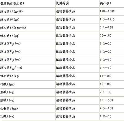 運(yùn)動營養(yǎng)食品中食品添加劑和食品營養(yǎng)強(qiáng)化劑使用規(guī)定
