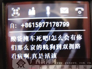 周女士家人手機(jī)上接到的其中一條侮辱短信。劉瓊攝