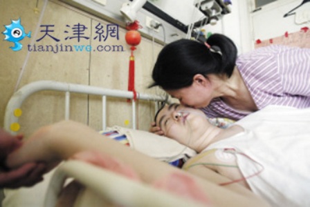天津市河西區(qū)小海地第四醫(yī)院四樓的監(jiān)護病房內(nèi),收住的大都是上了年紀的老年人,可靠近走廊的一張病床上躺著的卻是一名少年。少年的身上戴著心電監(jiān)護器,鼻腔中插著胃管和輸氧管,一臺吸痰機就擺在病床邊的椅子上。跟周圍病床相比,這張床顯得比較特殊,不僅是因為床上的少年已經(jīng)躺了23個月,更因為病床的旁邊擺滿了各種生活用品,床間過道儼然成了一個小型廚房。