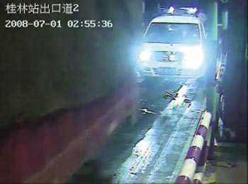 救護(hù)車進(jìn)站時(shí)的監(jiān)控錄像截圖。