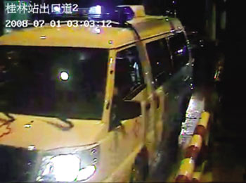 救護(hù)車離開(kāi)收費(fèi)站時(shí)的監(jiān)控錄像截圖。桂林收費(fèi)站提供
