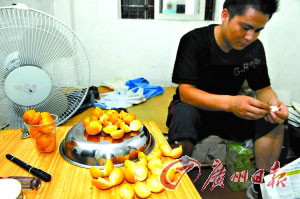 剝開金橘,可以清楚地看到蠕動(dòng)的蛆蟲。 馮昕攝