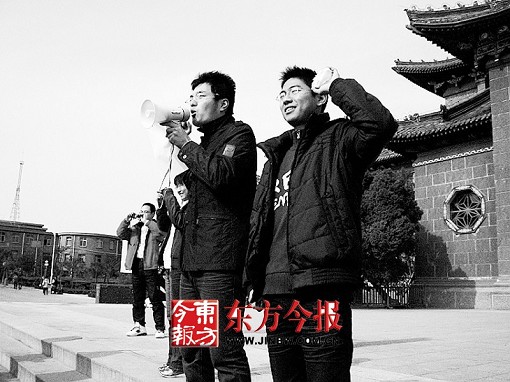 河南大學(xué)學(xué)生舉饅頭宣誓