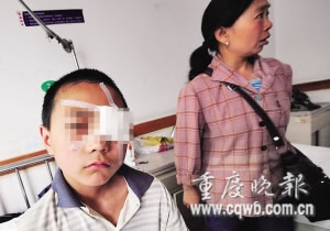 昨日,在墊江縣人民醫(yī)院第一分院眼科病床上,13歲的小武左眼蒙著厚厚的紗布。他剛做完手術(shù),神情充滿恐懼。小武的母親胡榮芬說,他們是農(nóng)村人。孩子主要由婆婆爺爺照看。因為有睡覺打鼾的毛病,孩子性格內(nèi)向自卑。