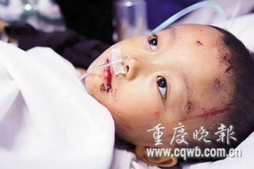 昨天(10月29日),記者在重慶市第六人民醫(yī)院見到了病床上這個叫孫浩的3歲男孩!拔也煌,我想媽媽了。”孫浩說到這里流下了眼淚。據了解,從孩子出事到現(xiàn)在,其父母一直沒有出現(xiàn),一直是干媽守在醫(yī)院。