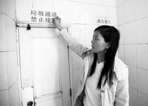 在李嬌的指引下,記者來(lái)到事發(fā)現(xiàn)場(chǎng),此時(shí),“肇事”的垃圾通道門(mén)上已經(jīng)重新上了鎖,并掛上“垃圾通道禁止使用”的警示標(biāo)語(yǔ)。“這是出事后醫(yī)院設(shè)置的!崩顙沙鍪玖耸掳l(fā)當(dāng)時(shí)拍下的照片,“醫(yī)院的做法實(shí)則已經(jīng)承認(rèn)過(guò)錯(cuò),但就是不肯和我們協(xié)商賠償!