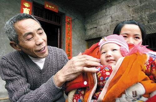 兒媳婦小梅抱著兩個(gè)月大的孫子星星(小名),走出房門。星星胖乎乎的,眼睛很亮,見著生人,“格格”笑起來。一旁的老杜也樂了,伸手逗起孫子來,一家人其樂融融。