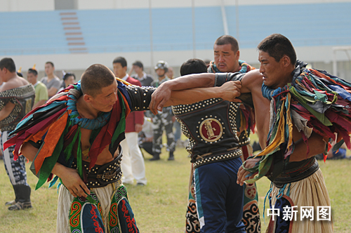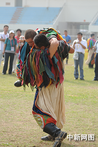 中新網(wǎng)泉州10月31日電 (劉通)今天上午,第六屆全國農(nóng)民運動會在福建泉州繼續(xù)進(jìn)行!安恕(蒙古族摔跤)雖是本屆農(nóng)運會中國式摔跤比賽中的一個小項,但卻極富觀賞性和趣味性。無論服飾、入場儀式還是比賽規(guī)則都帶有獨特鮮明的民族色彩。