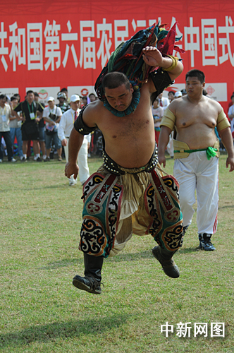 在搏克歌的悠揚(yáng)樂(lè)曲聲中,運(yùn)動(dòng)員模仿猛獸動(dòng)作跳起鷹、鹿、獅舞魚(yú)貫進(jìn)場(chǎng),英武豪邁,彰顯出蒙古族人民粗獷不羈的品格。