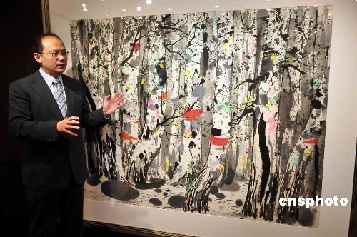 圖為預(yù)料成交價(jià)超過(guò)四百萬(wàn)港元吳冠中名作《白樺林》。中新社發(fā) 譚達(dá)明 攝