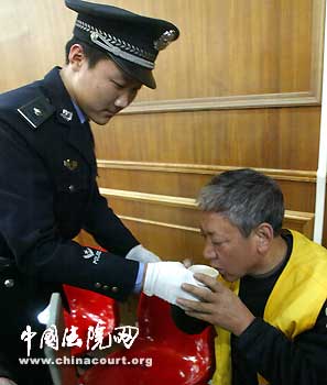 法警給被告人端來(lái)水