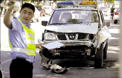 李先生隨即攔下一輛過(guò)路車(chē),向西追去。皮卡在路上畫(huà)著“之”字形跑,逆行了100多米后,撞上了一輛正常行駛的送報(bào)自行車(chē),送報(bào)員連人帶車(chē)重重摔倒在地。而皮卡車(chē)?yán)^續(xù)向前逆行了100多米,沖過(guò)順義五中大門(mén),一頭撞上便道上的一棵樹(shù)后才停了下來(lái)。李先生和其他目擊者走近前發(fā)現(xiàn),肇事的皮卡原來(lái)是一輛城管執(zhí)法車(chē),車(chē)上僅司機(jī)一人。該司機(jī)不是城管隊(duì)員,而是一名城管協(xié)管員。
