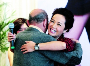 蔣雯麗本月雙喜臨門,剛憑借《立春》獲得金雞影后,其導(dǎo)演處女作《我們天上見(jiàn)》又在韓國(guó)釜山電影節(jié)上榮膺“最受觀眾喜愛(ài)電影大獎(jiǎng)”。雙獎(jiǎng)在手的蔣雯麗昨日偕《我們天上見(jiàn)》的主演朱旭等在京慶功,可惜慶功宴上丈夫顧長(zhǎng)衛(wèi)姍姍來(lái)遲,活動(dòng)已經(jīng)結(jié)束了才出現(xiàn),連話都沒(méi)來(lái)得及說(shuō)上一句。