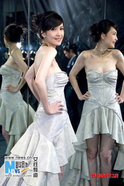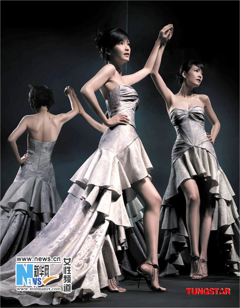 要配合“舞會(huì)焦點(diǎn)”的主題,一襲舞會(huì)晚裝當(dāng)然是必備。著名時(shí)裝設(shè)計(jì)師Henry Lau為周慧敏度身訂造的晚裝,是古典宮廷禮服及現(xiàn)代簡(jiǎn)約晚裝的融合,高貴典雅且性感迷人,上身的貼身低胸束衣剪裁細(xì)膩,完全展現(xiàn)周慧敏的腰臀曲線;而下身的短裙設(shè)計(jì)能突出雙腿的線條美,加上拖尾裙擺更顯高貴華麗。整件晚裝更用上Henry特別從倫敦收集回來的古董布匹縫制而成,份外珍貴;而由于繡上金線花紋圖案的布料較重,整件晚裝重達(dá)15磅。