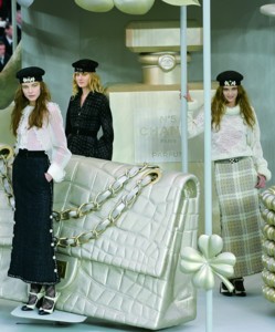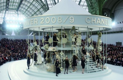 近日,Chanel在北京四季酒店舉辦了08秋冬時裝新品發(fā)布,一場華麗的“旋轉(zhuǎn)木馬”秀成為北京時尚圈一大亮點(diǎn)。在“旋轉(zhuǎn)木馬”設(shè)計里,其實(shí)并沒有木馬的影子,菱格紋包、珍珠項(xiàng)鏈、雙C標(biāo)志、鑲著滾邊的Chanel外套與浪漫蝴蝶結(jié)等經(jīng)典圖騰俏皮地迎接著人們的目光。