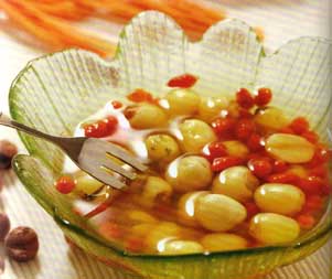 1.泥鰍紅棗湯:泥鰍30克~50克,紅棗20克,食鹽少許。加水置武火上燒沸,再用文火煮25分鐘,加入鹽、味精即成。服用宜每天1劑,連服10劑。泥鰍性味甘平,入脾、肝、腎三經(jīng),具有補(bǔ)中益氣,強(qiáng)精補(bǔ)血功效,與紅棗共用有養(yǎng)血潤燥之效。