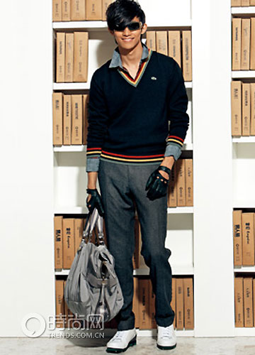 這個(gè)款式是最具有紳士魅力的線衫,在大多數(shù)場合都能讓你顯得低調(diào)卻又精致。但它適合肩膀?qū)掗熞稽c(diǎn)的男士,能給人高大的依靠感。肩膀太窄小的身材穿著它會(huì)把身材變成一個(gè)梨形,不利于男性形象的發(fā)揮。搭配時(shí),為了避免領(lǐng)間的單調(diào),可以用細(xì)長條的絲巾悄悄地露出一點(diǎn)邊。