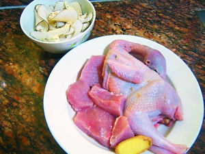 2. 瘦肉切粒狀,和宰好的鷓鴣一起汆水,撈起待用;