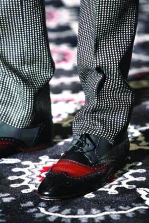 休閑西裝配隨性牛仔褲,頸間隱約露出一小段彩色方巾,這樣的男人已經(jīng)會(huì)令女人多看他一眼;如果他腳上蹬著的那雙中幫皮靴里不經(jīng)意地露出一截彩色毛線褲襪,那一定會(huì)引來探究的目光。這是今年秋冬大牌男裝設(shè)計(jì)師推出的最酷的“童趣”裝扮,讓男人借著孩提時(shí)代一雙彩色毛線褲襪回味童年時(shí)光,也算是一種心靈瑜珈吧。