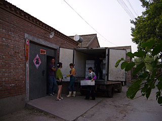 晚上六點(diǎn)鐘,趙梅(化名)準(zhǔn)時(shí)來到了位于通州區(qū)臺(tái)湖鎮(zhèn)田府村373號(hào),一輛中型貨車緩緩駛?cè)肓诉@座民房旁邊的車庫,隨著后車廂門的打開,她和其他8個(gè)工人熟練搬起裝滿使用過的“餐具”的箱子,從原本緊閉的大門里進(jìn)去。