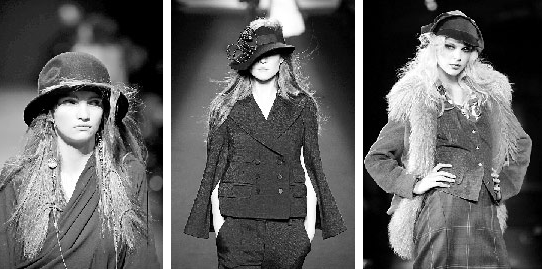 中性風格的簡約版淺口禮帽是今冬最熱門之選,很“百搭”,幾乎可以搭配不同風格的時裝。和呢子大衣、小西服等線條硬朗的服裝在一起,帥氣颯爽;和女性風格濃郁的雪紡裙、短裙等搭配,刻意拉大的反差也很吸引眼球,最好配上可愛感十足的彩襪,更是有另一番的風情。 (巫倩姿)