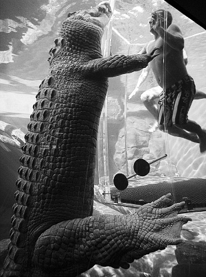 最近,澳大利亞達(dá)爾文市中心一家主題公園新開設(shè)項(xiàng)目“死亡之籠”,迎合愛冒險(xiǎn)游客的心理。游客被關(guān)在一個(gè)透明籠中,與籠子一同沉入生活著兇猛咸水鱷的水池中,近距離體驗(yàn)“與鱷共舞”的感受。