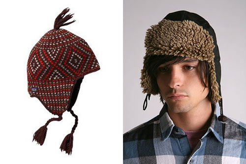 左起: Patagonia 羊毛帽子, $35; Urban Outfitters 瘋狂轟炸機(jī)飛行員帽子, $32.