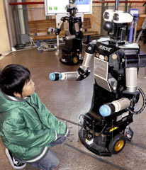 據(jù)日本共同社報道,原來這是國際電氣通信基礎(chǔ)技術(shù)研究所(ATR,京都府精華町)等單位開展的一項機器人試驗項目。身高114厘米的“Robovie-II”機器人擅長“察言觀色”,對于猶豫不定的客人,它會一邊招手一邊接近客人,詢問“需要幫忙嗎?”,隨后用聲音或動作帶客人前往想去的地方。