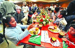 12月24日,圣誕節(jié)前夕,在美國加利福尼亞州洛杉磯市一慈善機構內,數(shù)千名兒童享用著該機構提供的圣誕大餐