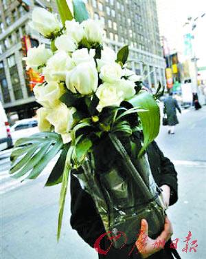 情人節(jié)來(lái)臨之際,美國(guó)街頭的商販正兜售白玫瑰花!