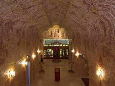 先從世界各地飛到澳大利亞悉尼,然后轉(zhuǎn)機(jī)到南部教會(huì)城市阿德萊德(Adelaide),在這里住宿一夜,補(bǔ)足精神后,第二天上午乘坐惟一一家經(jīng)營庫波佩迪航線的Kendell Holidays航空公司的小飛機(jī),在只有8個(gè)座位的單引擎飛機(jī)上度過難挨的3個(gè)小時(shí)——沒有空姐伺候,也沒有咖啡和紅酒,舷窗下面是一望無際的紅土沙漠,就在女孩子們即將花容失色的當(dāng)口兒,庫波佩迪到了。在高達(dá)40攝氏度的熱浪中坐上四驅(qū)車,沿途清一色的坑洞和起伏的的紅色沙丘,仿佛登上了土星,在這里首先要學(xué)會(huì)“黑白顛倒”,把白天當(dāng)夜晚,把夜晚當(dāng)白天。先從晚上開始吧,因?yàn)橥砩蠝囟炔拍芙迪聛恚热ド痰杲o情人挑選蛋白石,然后——庫波佩迪郊外有一個(gè)稱作“月球世界”(Moon Plain)的沙丘,是觀看南半球流星雨的最佳地點(diǎn),與情人摸黑來到這里,坐在柔軟的沙子上,老板會(huì)送上兩杯冰涼的澳洲利亞橙,然后透過高倍天文鏡了望星河閃爍的太空,在流星即將滑落的瞬間,擁緊你的情人許下星語心愿.....沙漠里的白天酷熱難當(dāng),最好呆在旅館里,而洞穴旅館恰恰是庫波佩迪的特色,情人們稱其為“洞房”——地地道道的“洞”!事實(shí)上,鎮(zhèn)上除了教堂和醫(yī)院,基本都是洞穴居所,這些大小不等的洞穴全部是開采蛋白石廢棄的礦坑。庫波佩迪最大的旅館“沙漠洞穴旅館”(Desert Cave Hotel)有20間“洞房”,別看在地下,卻相當(dāng)豪華,除了地下恒溫23攝氏度外,餐廳、酒吧、K房、珠寶店一應(yīng)俱全,曾經(jīng)入選過《世界頂級(jí)豪華小旅館》(Small Luxury Hotels of the World)。