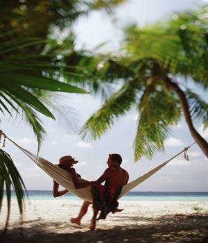 乘坐多尼船其實沒有固定的去處,就是在海上漂流,困了睡,睡了吃,Dhoni Mighili的情人講究Wherever和Whenever,只要愿意,貼身管家會按照吩咐當場調(diào)制情人中意的餐飲。每年情人節(jié)前后,是南十字星座和我國所說的銀河距離馬爾代夫最近的時候,情人們可以躺在甲板上了望夜空。在Dhoni Mighili上玩膩了,乘船到相鄰的Rangali島去,島上海底五米深處是希爾頓酒店新建成的海底餐廳Ithaa,餐廳僅有六個桌位,恰好和Dhoni Mighili的海灘屋數(shù)目一致,在這里用餐雖說價錢昂貴,但這是情人節(jié),吃的是情調(diào)、是氣氛、也是一份不變的諾言。