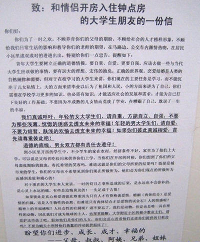 致:和情侶開房入住鐘點(diǎn)房的大學(xué)生朋友的一封信